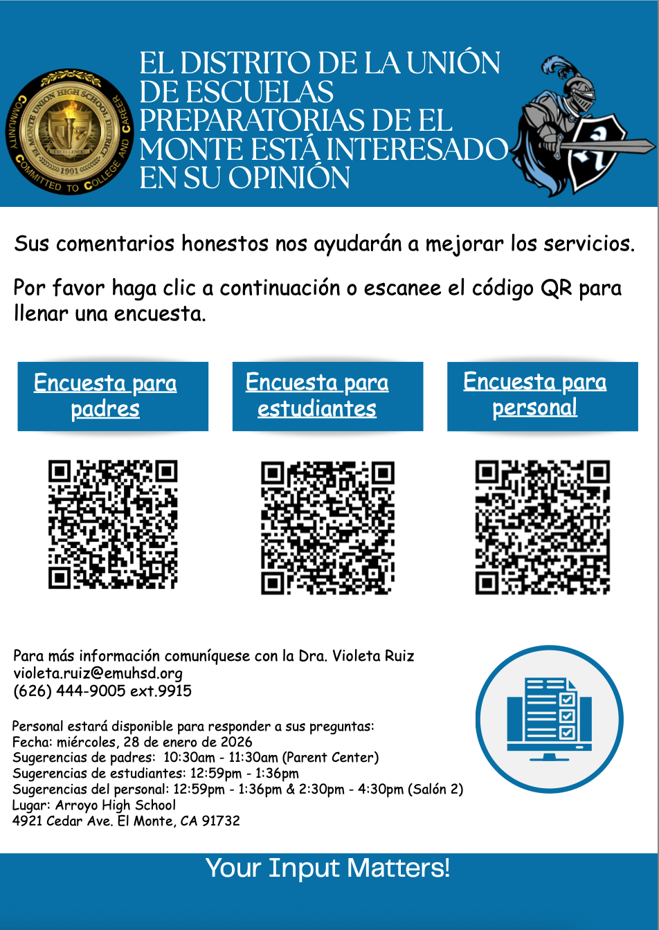 The next LCAP input meeting will be at Arroyo High School!